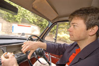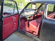 Driving the Morris Oxford Series II is a whole new experience, quite different from our former modern sporty cars: gear shift on the offset steering column, semaphore trafficators that pop out from the side to indicate and red leather bench seats. | ||